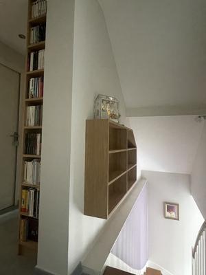 Cette bibliothèque utilise l'espace sur ce palier pour stocker bandes dessinées et grands livres à gauche, livres de poche et mangas à droite.