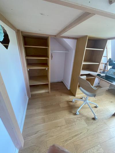 Cet ensemble Lit/Dressing/Bureau permet d'optimiser la surface de cette petite chambre.